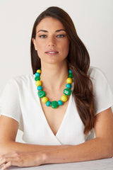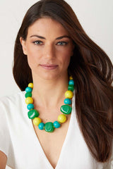 Bringing you a tropical fantasy with bursts of canary yellow, parakeet green and translucent turquoise!
