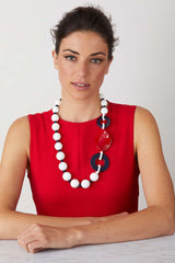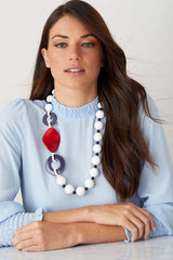 Riviera vibes with our white, red and navy-blue beaded necklace